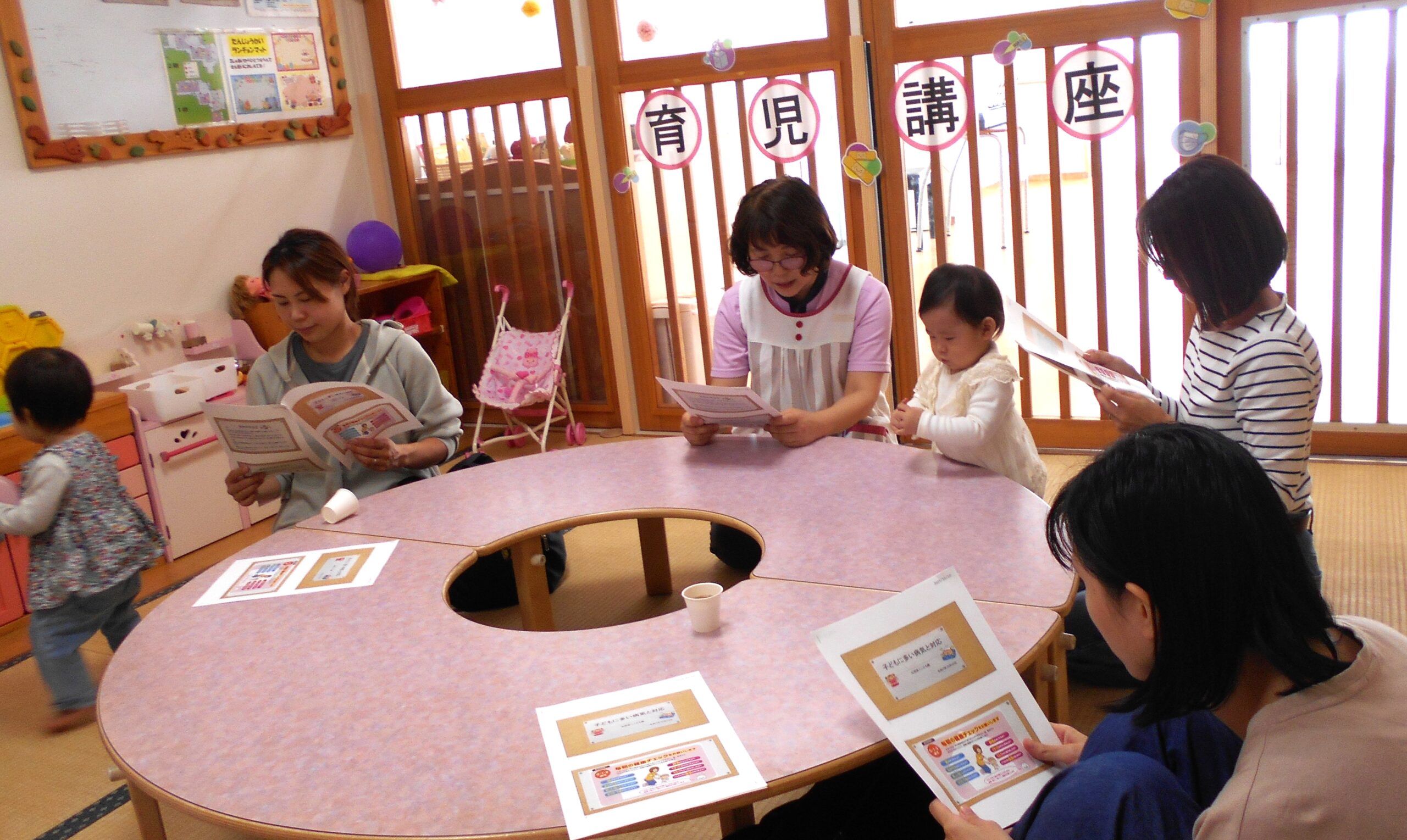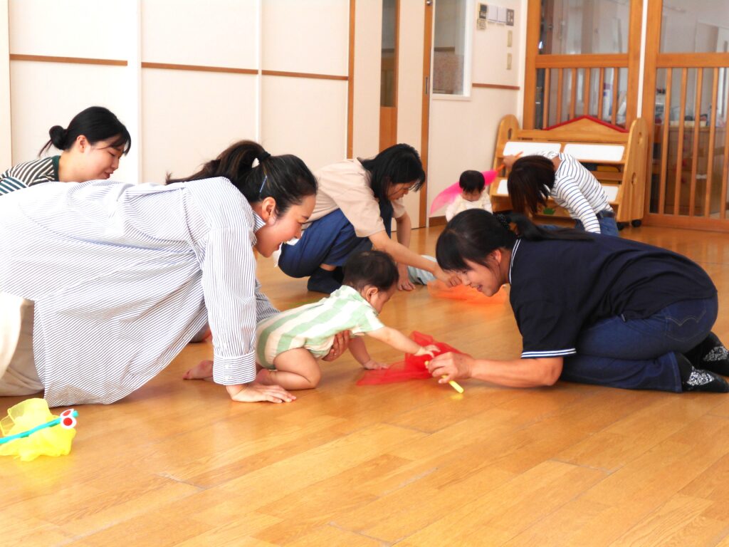 光明第八こども園の1歳・2歳児が毎月楽しみに参加している「リトミック」を地域向けに開催しました。楽しく音楽と触れ合いながら、基本的な音楽能力を伸ばすとともに、身体的、感覚的、知的に子ども達が個々に持っている「潜在的な基礎能力」の発達を促していくことなど知ることが出来ました。楽しく身体を動かした後は、当園看護師による「子どもに多い病気と対応について」の育児講座を開催。乳児期に罹る病気やその症状・対処法についてを行いました。「下痢の時はどうしたらいいの?」などたくさんの質問もあり有意義な時間を過ごしました。