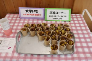 また、人気の試食コーナーでは大学芋を食べていただくと