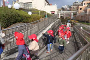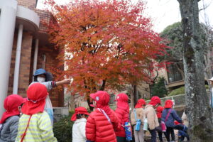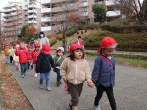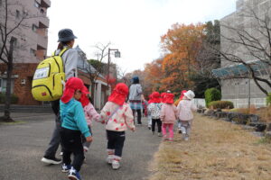 「アンパンマンだ!」「黄色い紅葉がきれいだね〜」と、友だちと嬉しそうに話しながら歩く姿がとても微笑ましかったです。