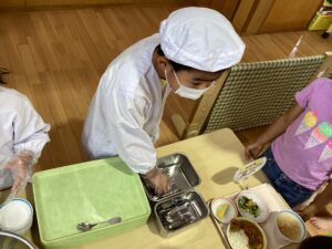 丁寧に支度をし、マスクと手洗いを済ませ、配膳開始。