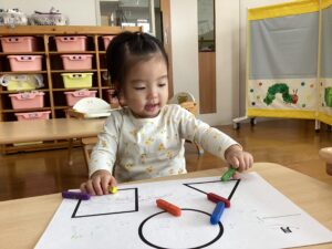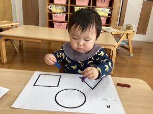まだそれが認識できない子は、絵の具やクレヨンといった道具を活用して、