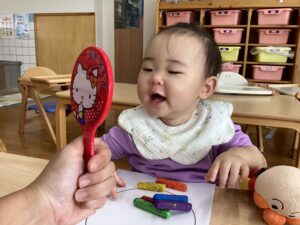 鏡に映るのが自分自身であると認識する子が増えてきました。