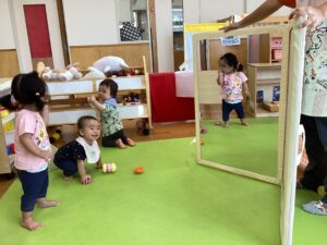 【0歳児:ミラーマットで遊んでみよう!】