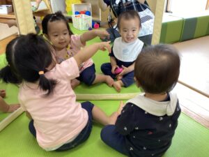 初めて見るマットに子どもたちは興味津々で集まって来ました。そして早速乗ってみます。