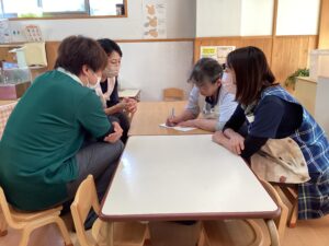子どもたちがお昼寝をしている時間に10分ミーティングを行っています。