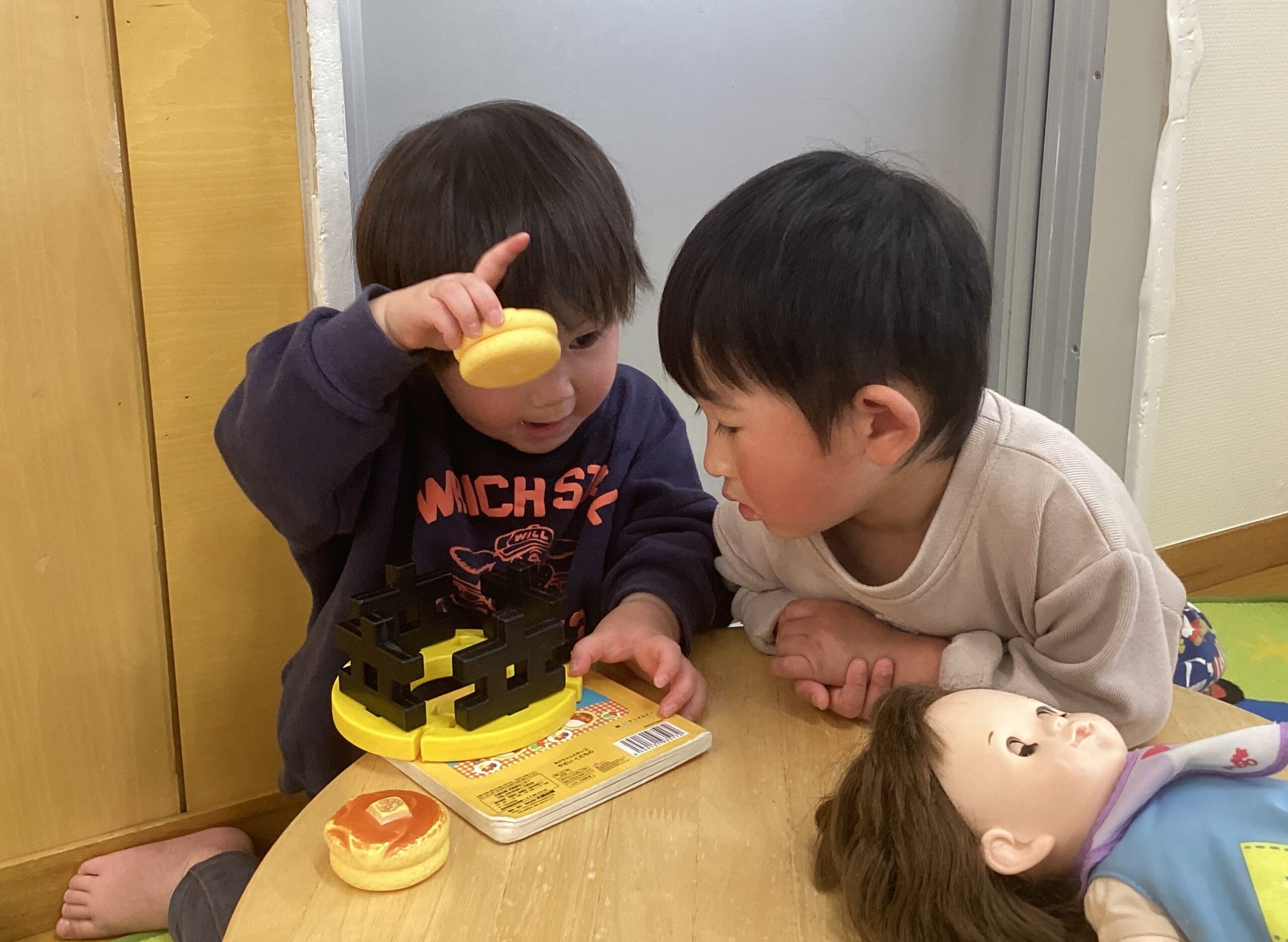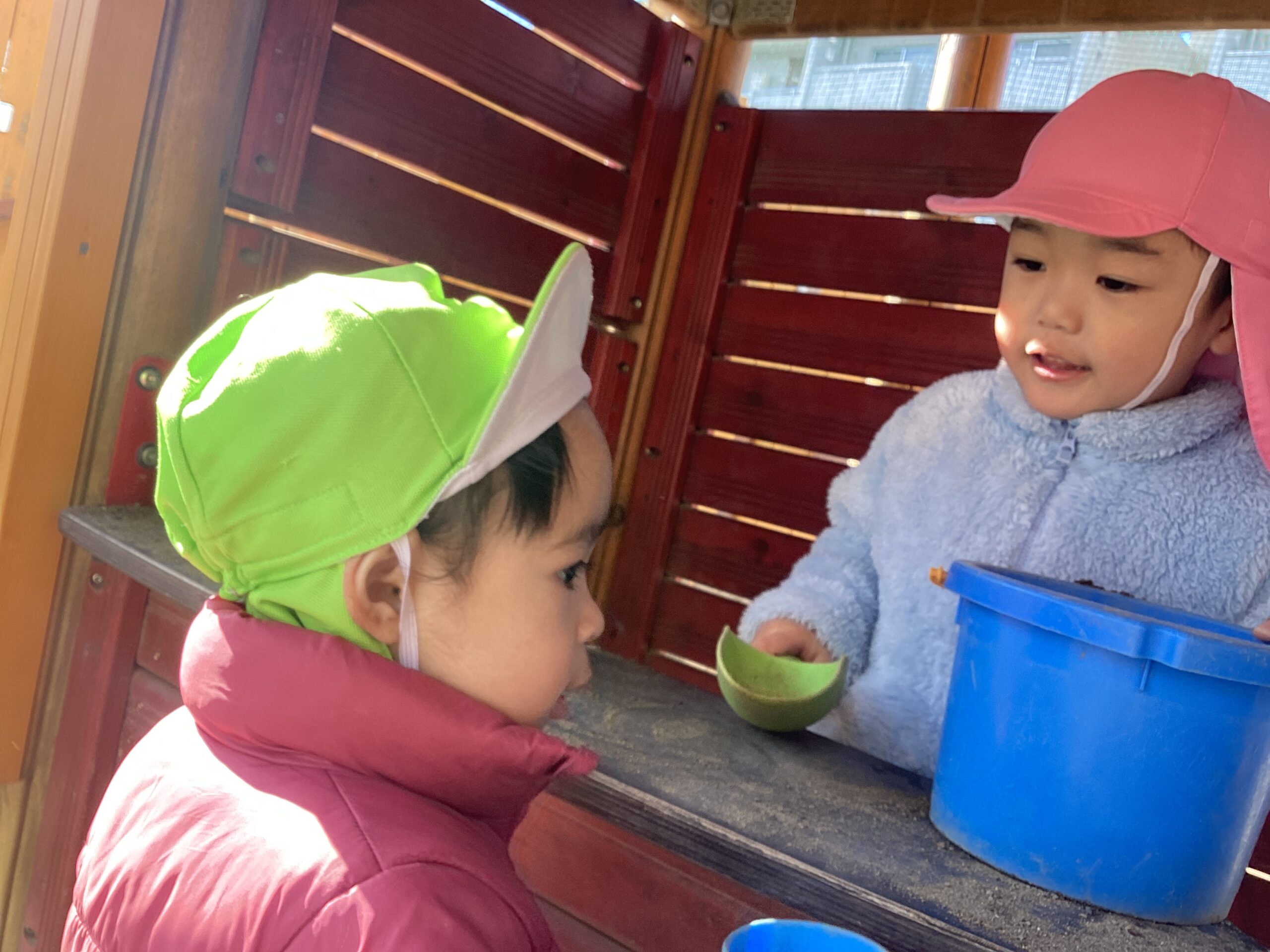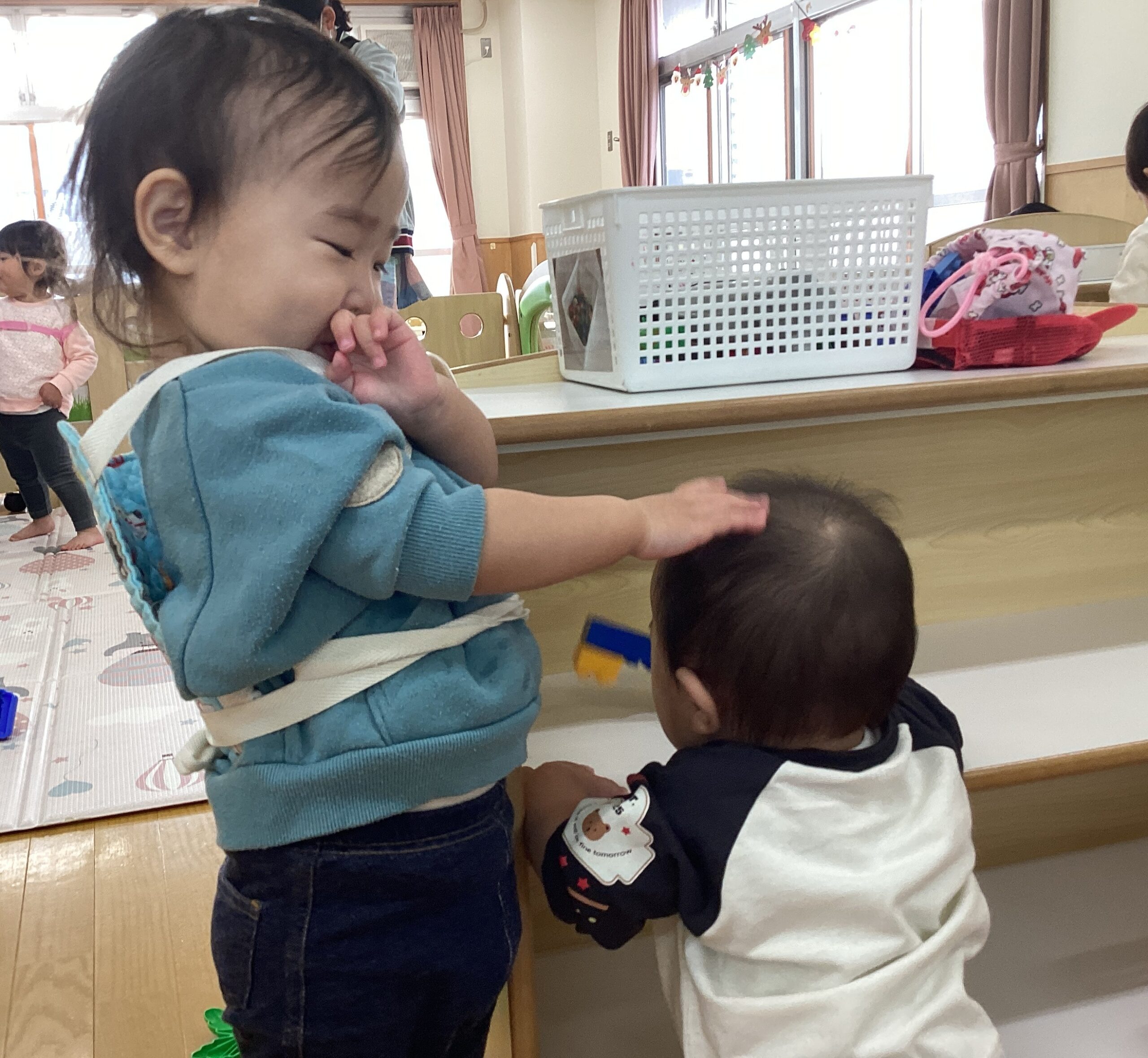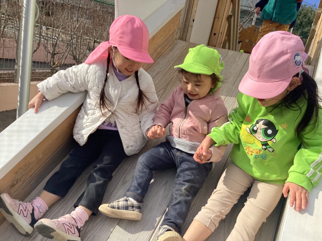様々な年齢の子どもたちと関わりながら、園生活を過ごしています。年上のお兄さんやお姉さんたちに優しく手を引かれて園庭で遊んだり、同じクラスの子とままごと遊びを楽しんだり、小さな赤ちゃんの頬に優しく触れて見たり…人との触れ合いを通して、思いやりの心や憧れの気持ちが育まれていきます。