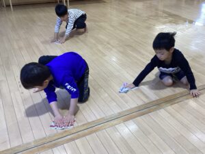 大掃除を行いました。大掃除をすることで年神様がたくさんの福徳を授けてくださるといわれています。 広間や下駄箱、おもちゃ、ロッカーなど自分たちが日々使っているものをきれいにしました。 「埃がたくさんだよ」「ここも掃除するの?」と話しながら、1年間使ってきた場所や物に「ありがとう」の気持ちを込めて、丁寧に取り組む姿が見られました。きれいになった園内で、気持ちよく新しい年を迎えたいと思います。