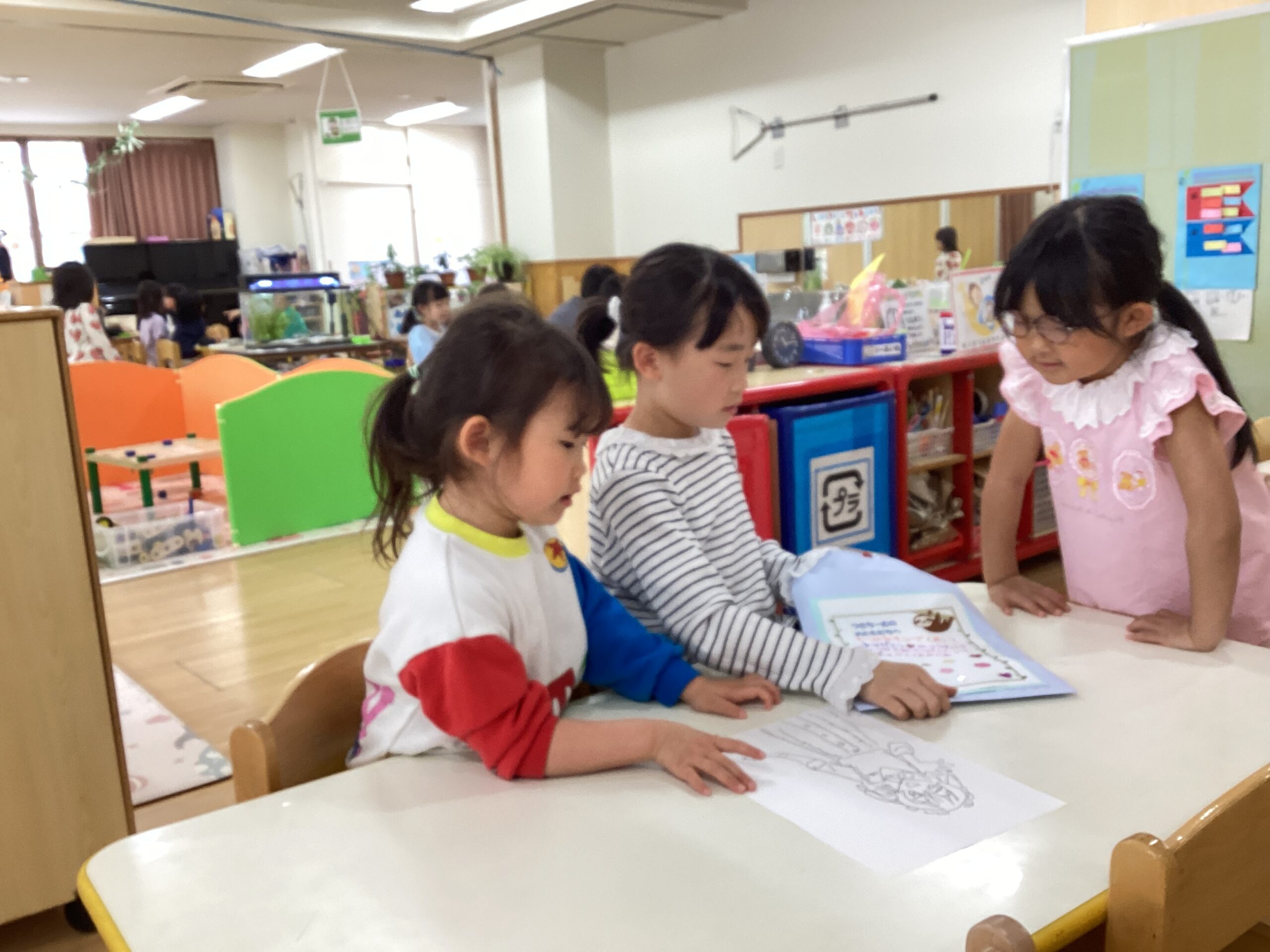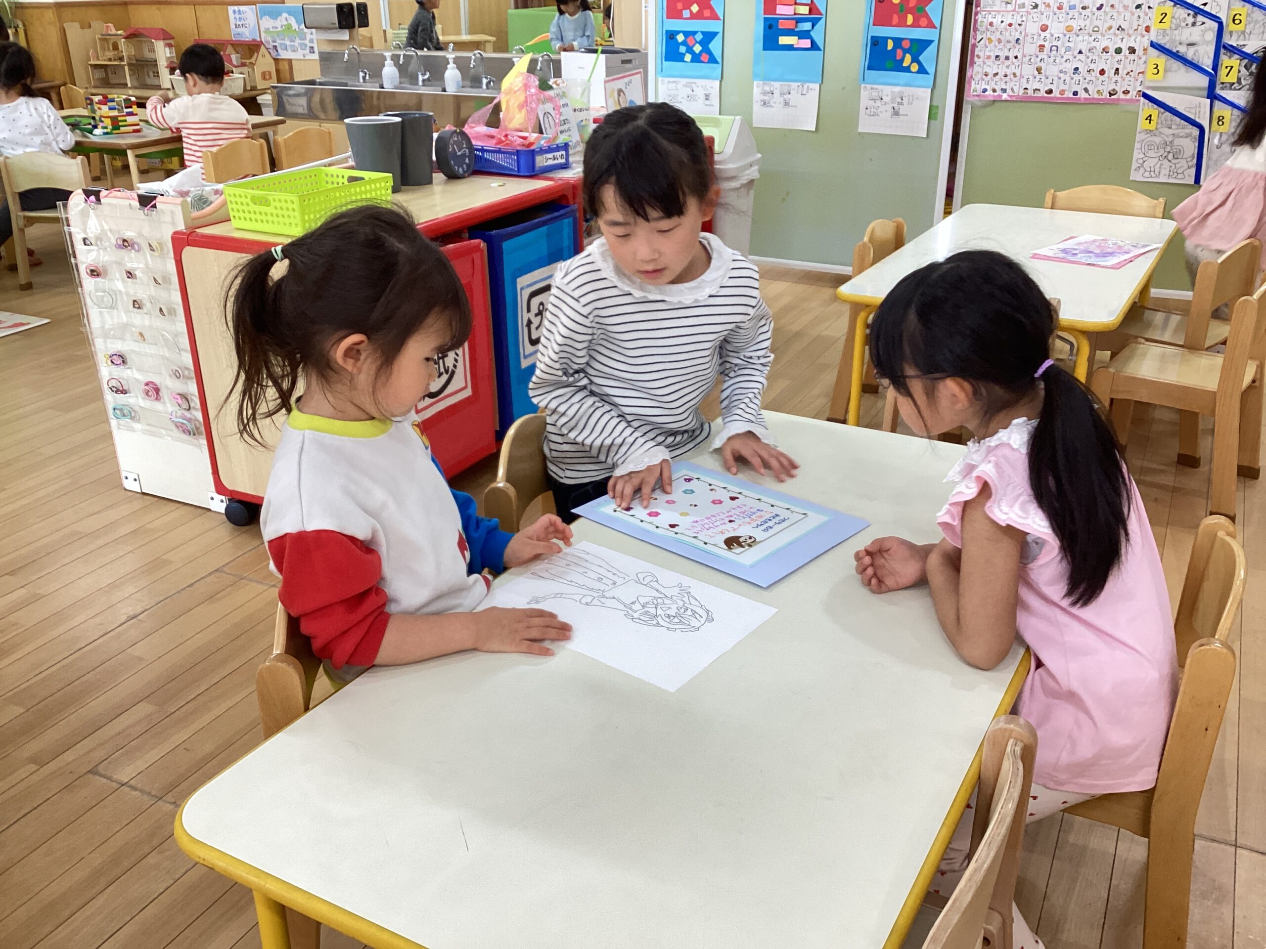 昨年度の卒業園児が、在園児に向けて作ってくれた塗り絵で遊びました。