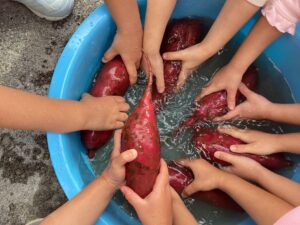 後日みんなで収穫や準備をしたさつま芋で芋煮汁を作るのが、今からとても楽しみです。