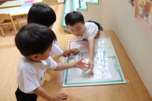 栄養表を通して楽しみながら食材の種類や働きを学んでいる子どもたちです!