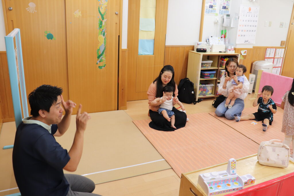 小さい子どもでも楽しんで英語に触れられる機会「ワクワク!English!」を開催しました。日常で使う挨拶や、体の部位を英語ではなんと言うのかな?と歌を交えながら学びました。