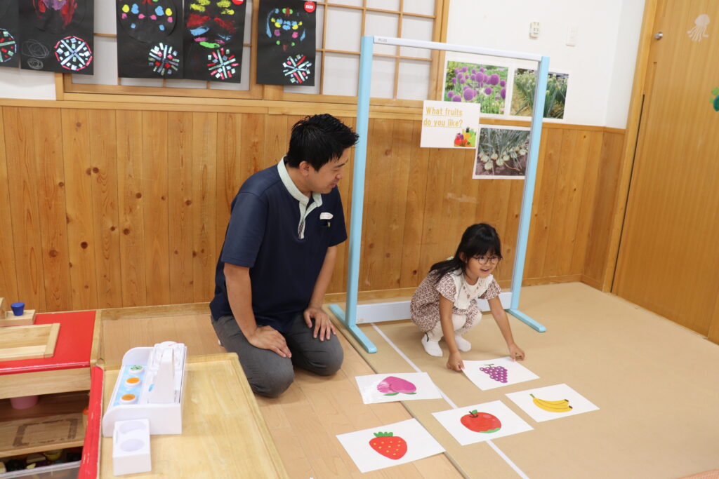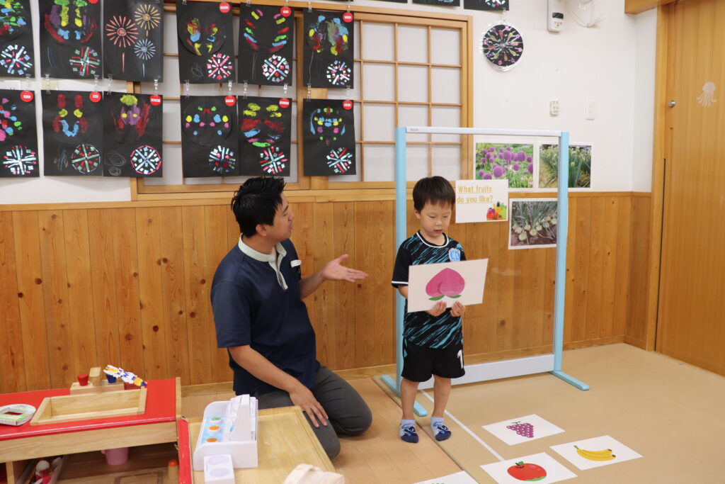 初めは恥ずかしがっていた子どもたちですが少しずつ英語に慣れ、講師役の職員のネイティブな発音を真似して楽しい時間を過ごしました♪