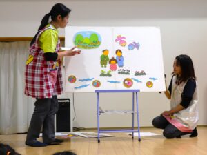 ひなまつりの集いでは、 ひな祭りの由来をペープサートで見たり、