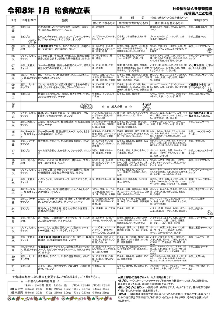献立表 1月